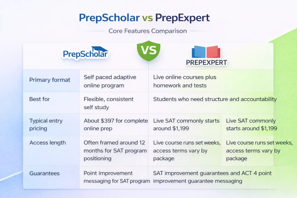 PrepScholar leans into adaptive learning, diagnostic driven study plans, and lots of practice. It is built for consistency and flexibility. Prep Expert leans into instructor led structure, intense strategy training, and bigger “score improvement” style guarantees on its live courses.