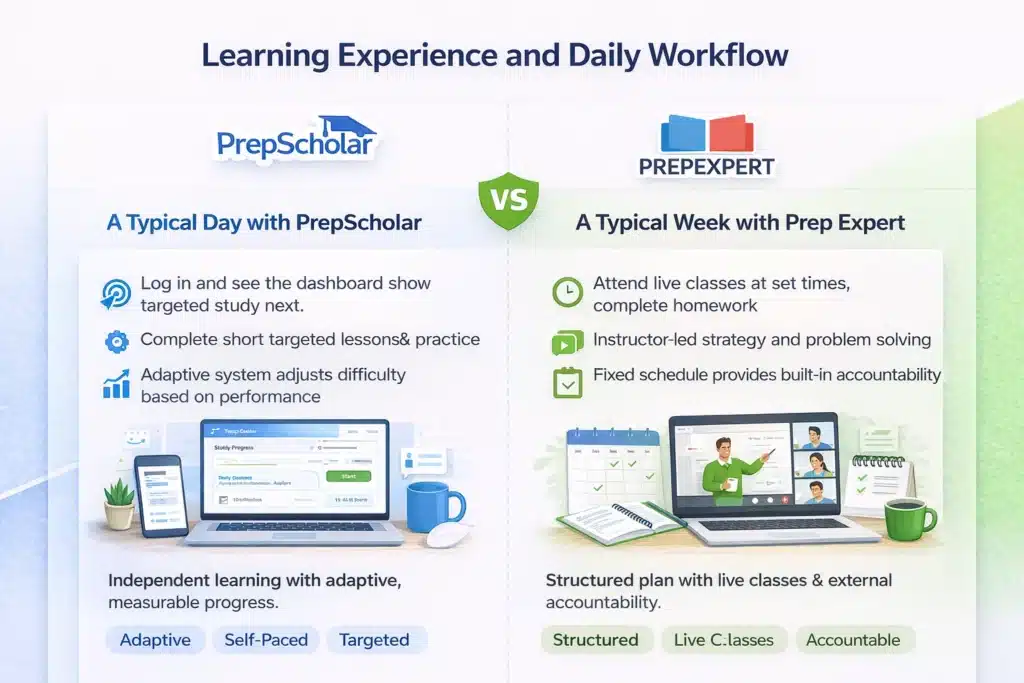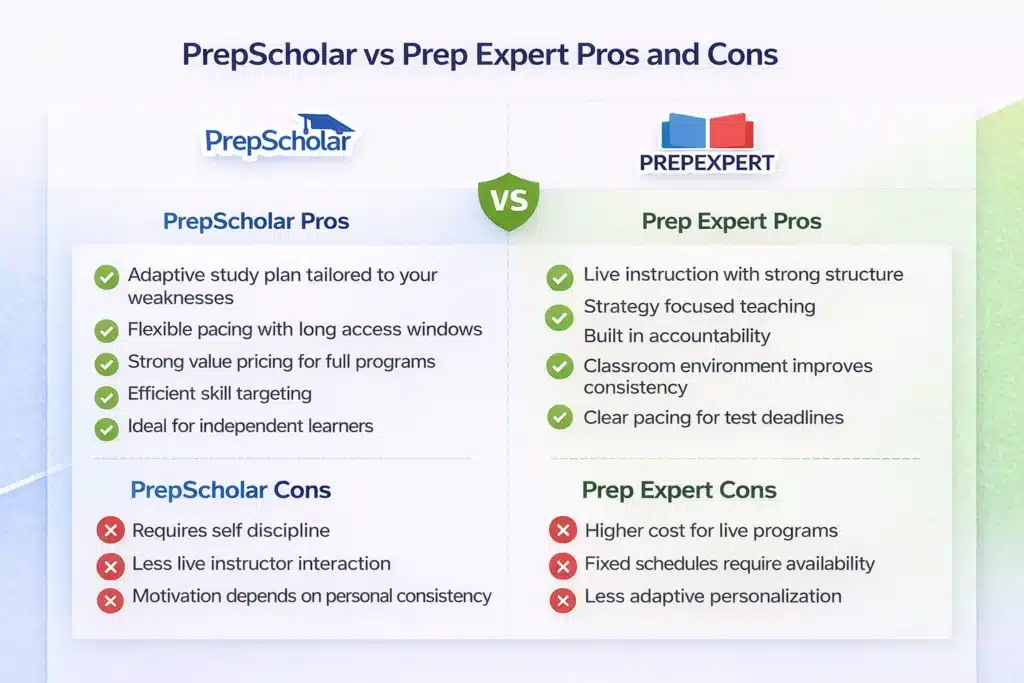 If you are the kind of student who follows a plan when it is laid out clearly and you can actually stick to a weekly routine on your own, PrepScholar is usually the better value. If you need external pressure, deadlines, and live instruction to stay locked in, Prep Expert is often the better fit, even though it typically costs more for the live formats.